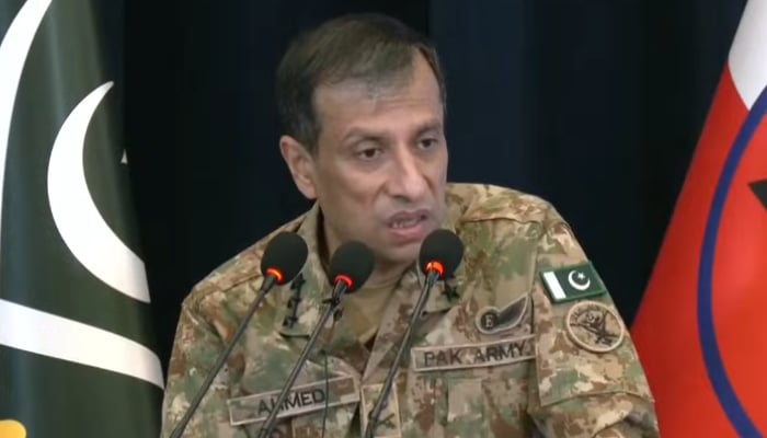 Inter-Services Public Relations Director General (DG ISPR) Lieutenant General Ahmad Sharif Chaudhry addresses a press conference on October 10, 2025. — Screengrab via YouTube/Geo News