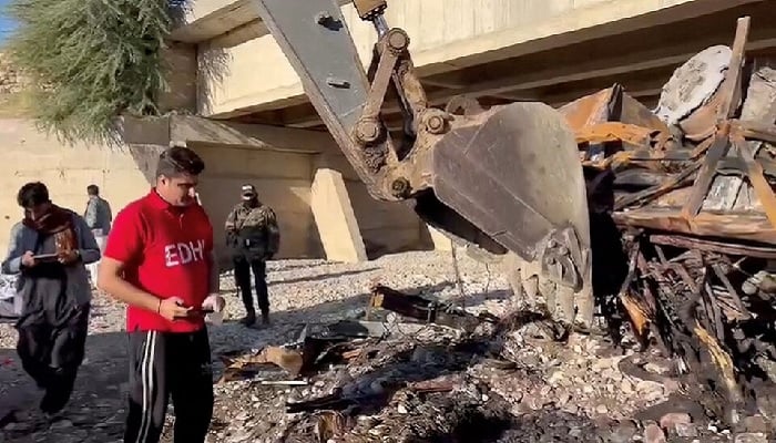 People work at the site of a bus crash in Lasbela District, Balochistan province, Pakistan, January 29, 2023. — Reuters