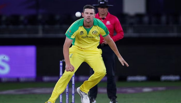 Australias Josh Hazlewood seen in action against New Zealand during ICC Mens T20 World Cup Final at Dubai International Cricket Stadium, Dubai, United Arab Emirates on November 14, 2021. — Reuters