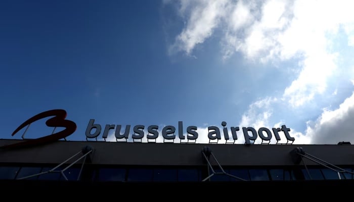 The logo of Brussels international airport is seen outside the terminal in Zaventem, Belgium March 31, 2025. — Reuters