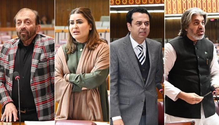 (From left to right) MQM-P lawmaker Farooq Sattar, PPP leader Shazia Marri, Minister of State for Interior Talal Chaudhry and PTI’s Ali Mohammad Khan. — National Assembly website/File