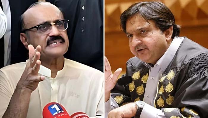 Punjab Assembly Speaker Malik Ahmad Khan (right) and Opposition Leader in Punjab Assembly Malik Ahmed Khan Bhachar. — Facebook/Malik Muhammad Ahmad Khan/PPI/File
