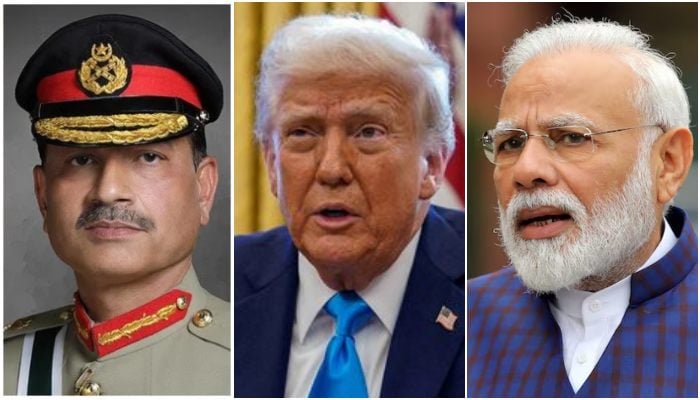 (From left) COAS Field Marshal Asim Munir, US President Donald Trump and Indian PM Narendra Modi. — ISPR/Reuters/File