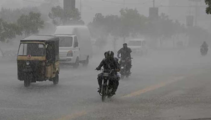 Commuters travel on a road during heavy rain in Karachi on August 20, 2025. — Reuters