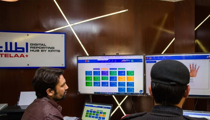 Levies personnel working at “Itelaa”, a digital reporting hub, established in Levies Headquarters, Malakand, Khyber Pakhtunkhwa. — Facebook/kpitbgov