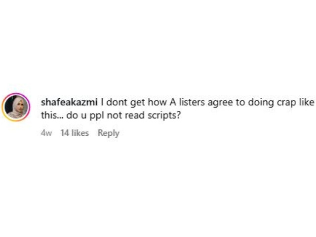 Fans are disappointed by Sajal and Humayun’s choice of script that is one the verge of normalizing such dynamics. One Instagram user wrote, “I don’t understand how A-listers agree to doing crap like this, do you people not read scripts?”