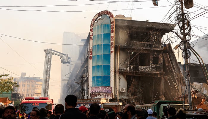 A general view shows the aftermath of a massive fire that broke out in the Gul Plaza Shopping Mall in Karachi, January 19, 2026. — Reuters