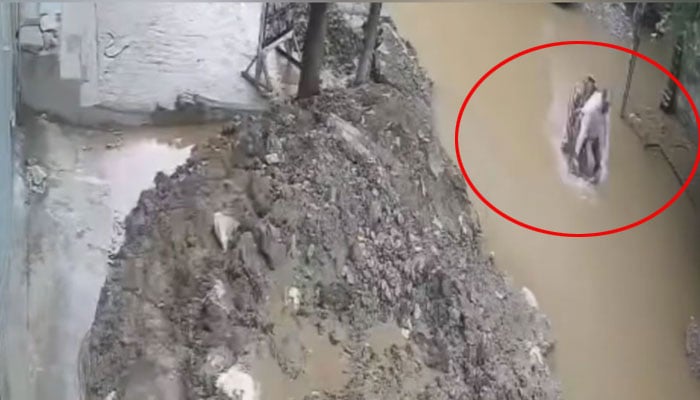 LAHORE: A motorcyclist narrowly escaped serious injury after falling into a deep pit, filled with rainwater, in Lahore’s Shahdara Town area.