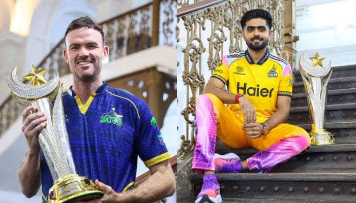 This collage of pictures shows Multan Sultans skipper Ashton Turner (left) and Peshawar Zalmi captain Babar Azam. — PSL