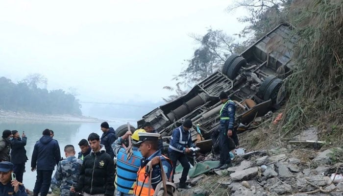 KATHMANDU: A bus in Nepal skidded off a mountain road and plunged into an icy river, police said Monday, killing at least 19 people, including a British tourist.