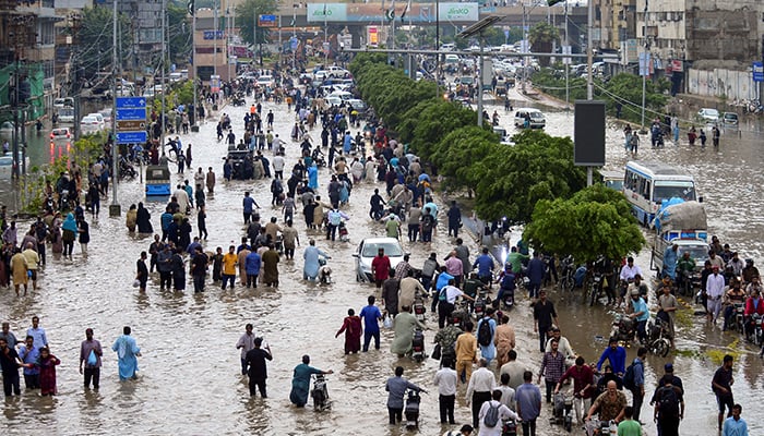 Citizens accused the authorities of hiding behind the excuse of “unprecedented weather” and expressed outrage at the lack of measures to cope with monsoon rains in Karachi.