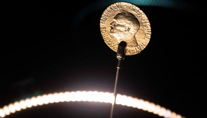 In this photo taken on December 9, 2021 an official Nobel Peace Prize gold medal is seen at the exhibition at the Nobel Peace Center in Oslo, Norway. — AFP