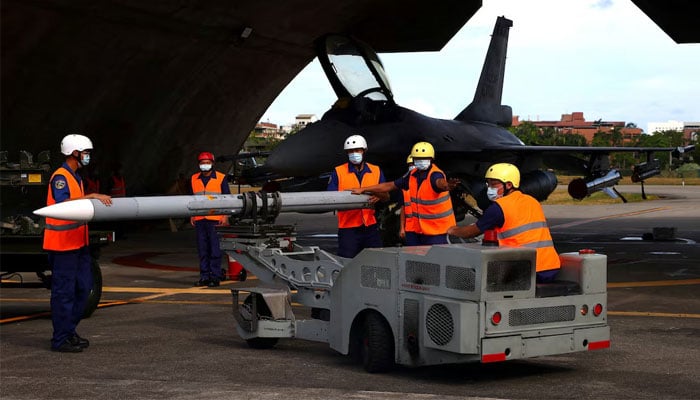 This representative image shows air force soldiers load a US made AIM-120 Advanced Medium-Range Air-to-Air Missile at a combat readiness mission during a press invited event at the airbase in Hualien, Taiwan, August 17, 2022. — Reuters