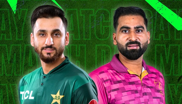 This collage shows Pakistan skipper Salman Ali Agha (left) and United Arab Emirates (UAE) captain Muhammad Waseem ahead of toss for the second T20I of tri-series at Sharjah Cricket Stadium, August 30, 2025. — Facebook/Pakistan Cricket Team