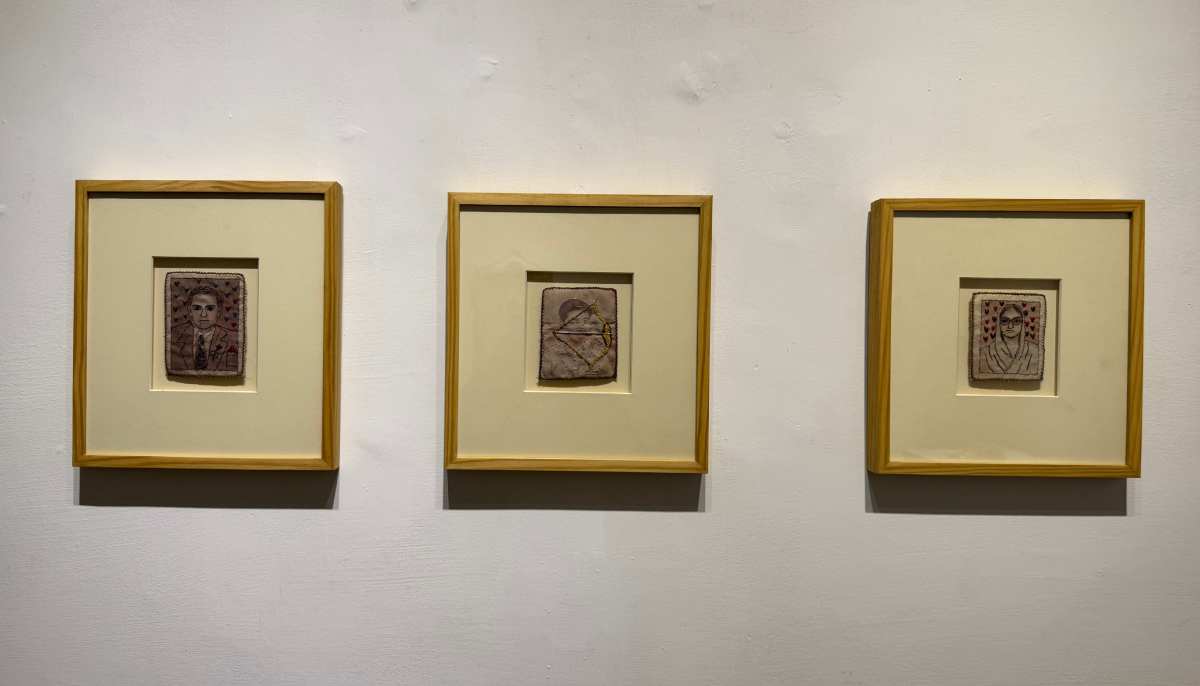 I begin my stroll around the gallery with Mohsin’s artwork ‘Dil Jan Sadkey’. For this piece, the artist not only stitched the contours of his late “amma and abba’s” faces into fabric, but also placed in between their frames the thread of his own being. ‘Sadkey’ — Mohsin’s self-portrait — is placed between the ‘Dil’ and ‘Jaan’, his parents’ portraits made using threads. This artwork carries the weight of their absence — a mother no more, a father lost to death and no one else to share the grief with.
