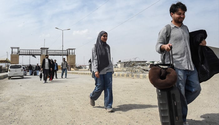 Pakistani nationals walk across the Pakistan-Iran border after returning from Iran at Taftan, Balochistan province on March 2, 2026 after the death of Irans supreme leader Ayatollah Ali Khamenei amid US-Israel strikes. — AFP