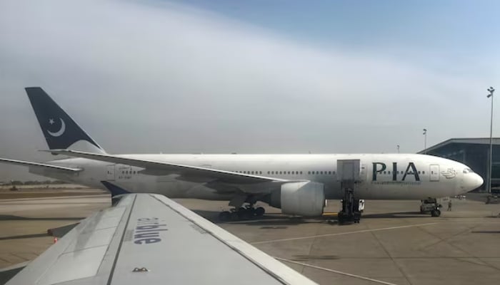Pakistan International Airlines (PIA) passenger plane sits on tarmac, as seen through a plane window, at the Islamabad International Airport, Islamabad, Pakistan October 27, 2024. — Reuters