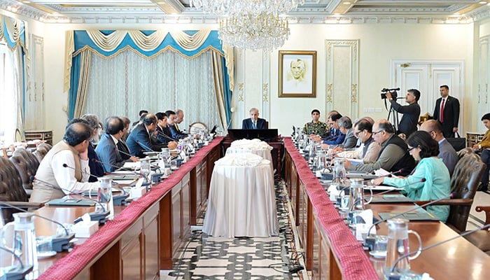 Prime Minister Shehbaz Sharif chairs a meeting on the performance of the National Tariff Commission in Islamabad, on July 10, 2025. — PID