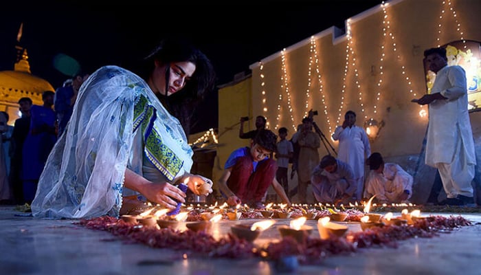 A young woman from the Hindu community lights diyas amid Diwali celebrations in Pakistan. — APP/File