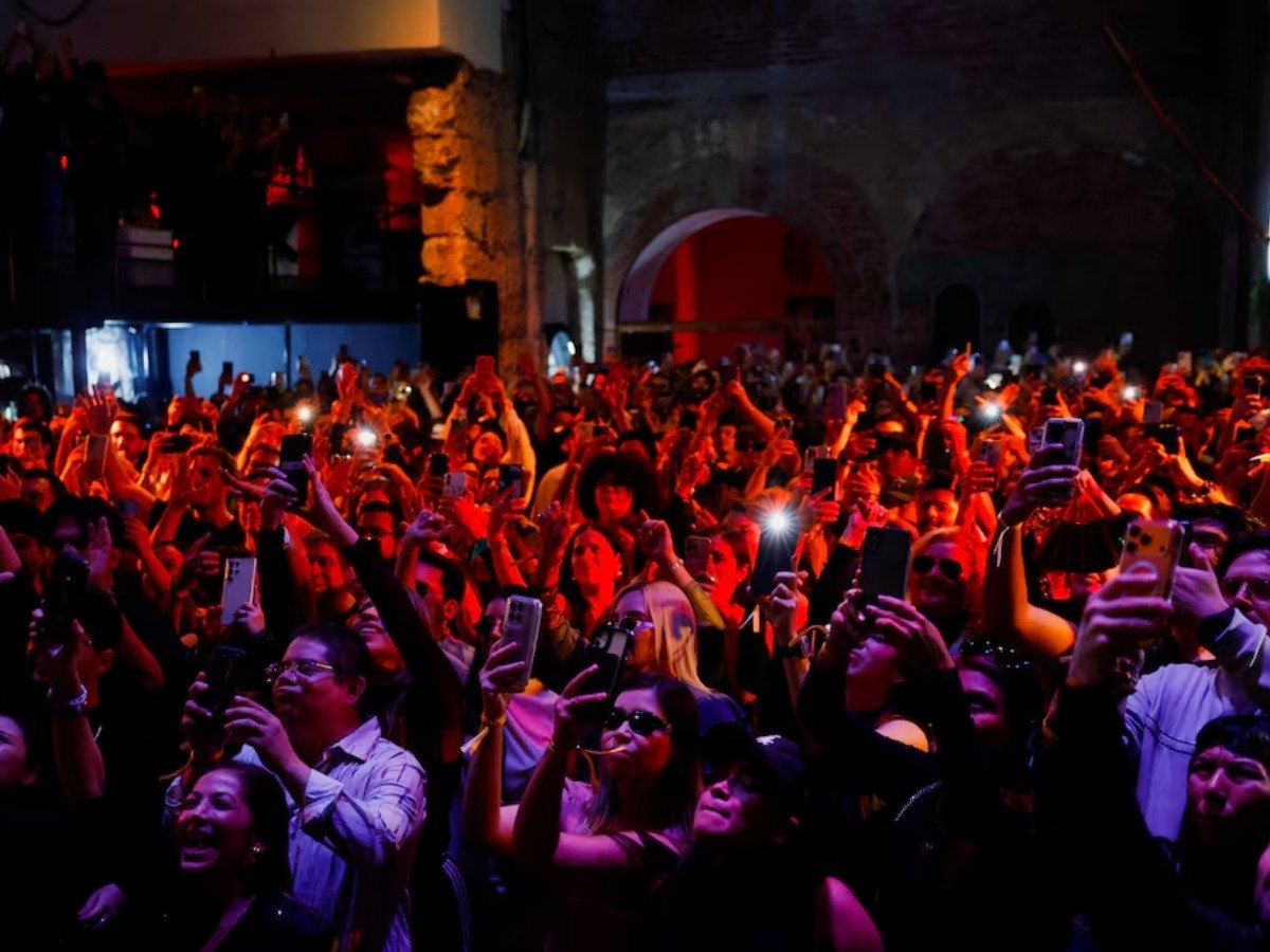 Under sweeping stage lights in Monterrey, Mexico, a packed dance floor pulses as a Catholic priest in a clerical collar raises one hand from the stage, electronic beats thundering through the hall.