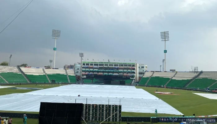 Light drizzle forces ground covers ahead of Pakistan Super League (PSL) 11 match between Lahore Qalandars and Multan Sultans at Gaddafi Stadium in Lahore on April 3, 2026. — Reporter
