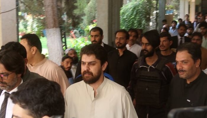 Policemen escort tribal chief Sherbaz Satakzai, suspected in the honour killing, is seen at a local court in Quetta, on July 21, 2025 — Reuters