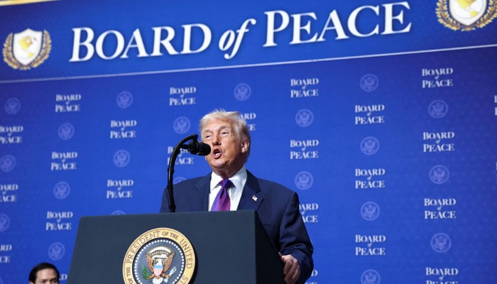 US President Donald Trump speaks at the inaugural Board of Peace meeting at the US Institute of Peace in Washington, DC, US, February 19, 2026. — Reuters