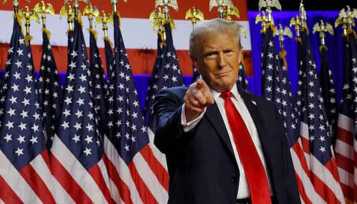 Donald Trump takes the stage to address supporters at his rally, at the Palm Beach County Convention Centre in West Palm Beach, Florida, US, November 6, 2024. — Reuters
