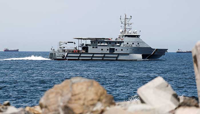 Royal Oman Police Coast Guard patrol boat surveys the area as the traffic is down in the Strait of Hormuz, amid the US-Israeli conflict with Iran, in Muscat, Oman, March 12, 2026. — Reuters