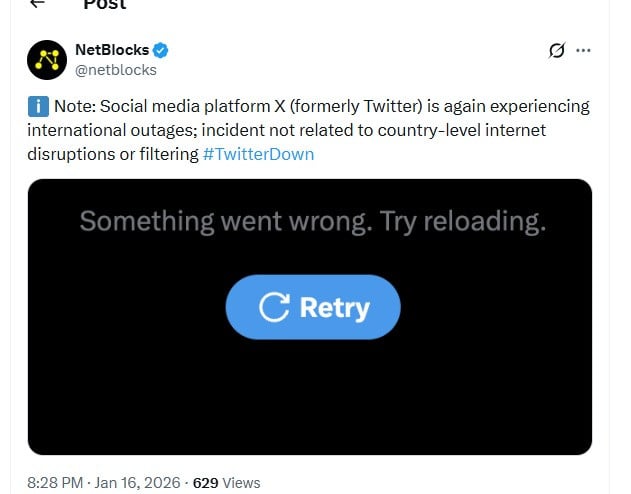 In a post on X, the monitor said: “X is again experiencing international outages; incident not related to country-level internet disruptions or filtering.”